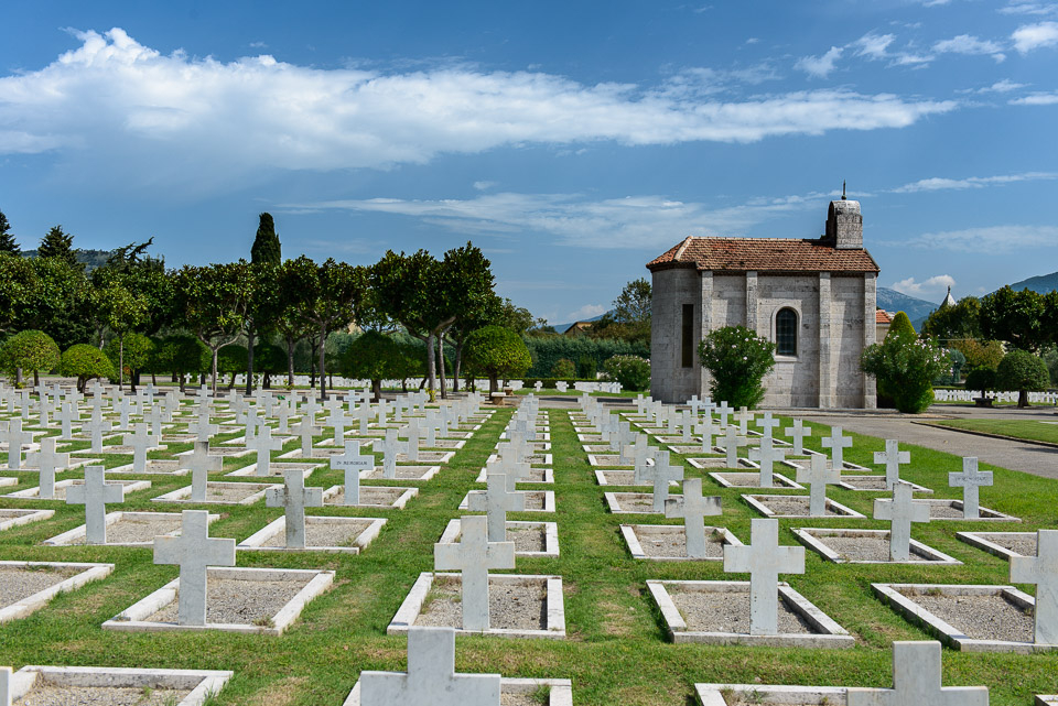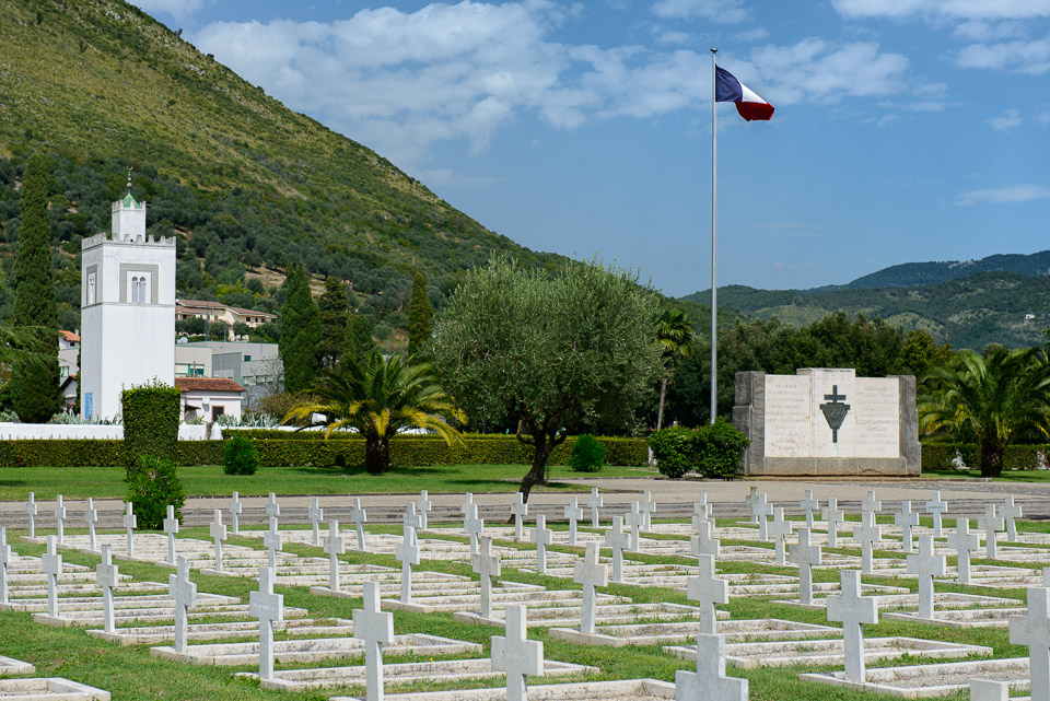 Uscendo dalla città di Venafro lungo la Strada statale 85 Venafrana direzione Isernia, su un’estesa zona pianeggiante (70.000 m²) si trova il cimitero di guerra francese, nel quale sono sepolti circa 6000 tombe di soldati del Corps Expeditionnaire Français (ma molte sono state esumate), di cui circa due terzi di origine marocchina, algerina e tunisina, oltre ad alcuni africani (senegalesi?), caduti in gran parte durante la battaglia di Cassino (nov.1943-mag.1944) e nell’aggiramento di Montecassino. Qui sono state traslate le sepolture di Miano. Per essi è stato eretto un monumento che richiama esplicitamente i minareti nord-africani, decorato con piastrelle di ceramica azzurre, che risaltano sul bianco calce delle mura, e con alcune iscrizioni. Al suo interno vi sono alcune tombe, di cui una al milite ignoto musulmano, e tre dedicate a militi con nome, uno Tunisino, uno Algerino, uno Marocchino. Tutte le tombe sono disposte sull’asse Nord-Est Sud-Ovest, con le lapidi rivolte a Nord-Est, ad eccezione di alcune tombe, poste dietro il minareto, di soldati ebrei (riconoscibili dalla stella a sei punte sulla lapide) e animisti (che sulla lapide hanno un “agnostico” sole stilizzato). Questa disposizione delle tombe suggerisce la possibilità che i caduti musulmani, qualora siano stati disposti sul fianco destro, abbiano il volto rivolto verso la Mecca. Su ciascuna lapide è riportato il nome (se noto) e la dicitura (in francese) “Mort pour la France” (morto per la Francia). È da notare che anche fra le tombe cristiane sono riconoscibili nomi arabi e africani.
