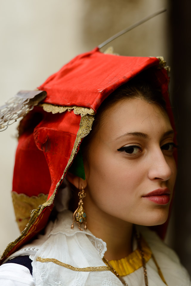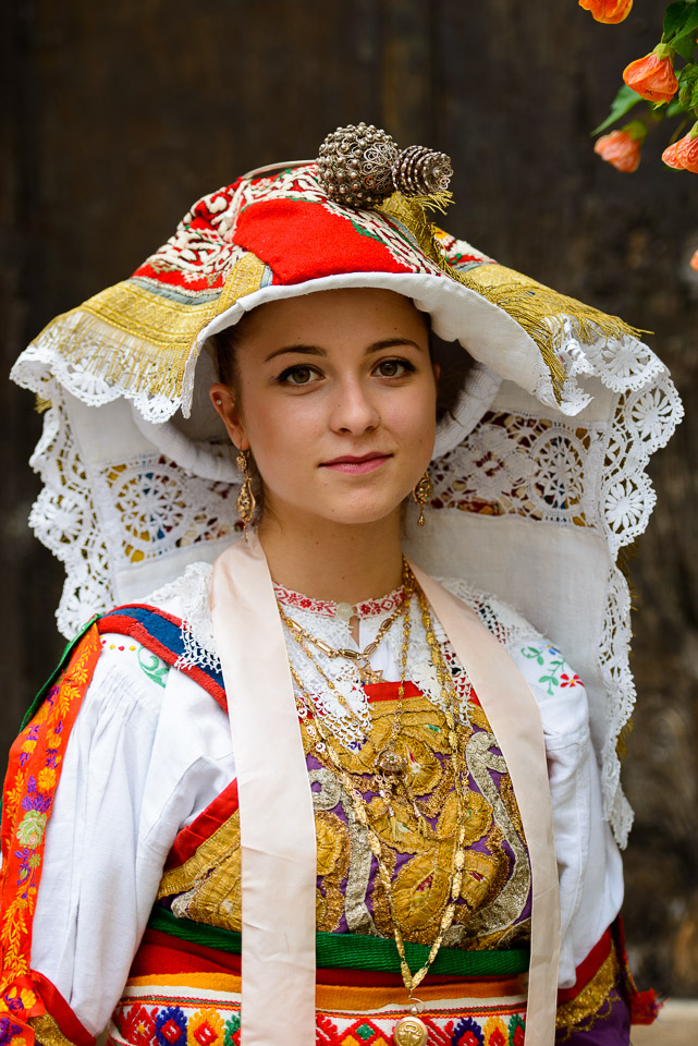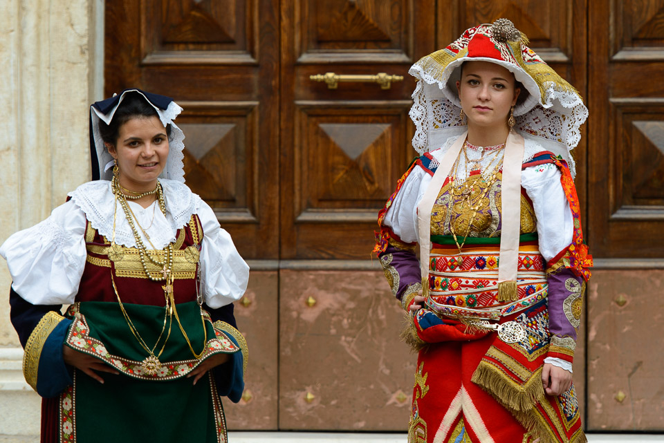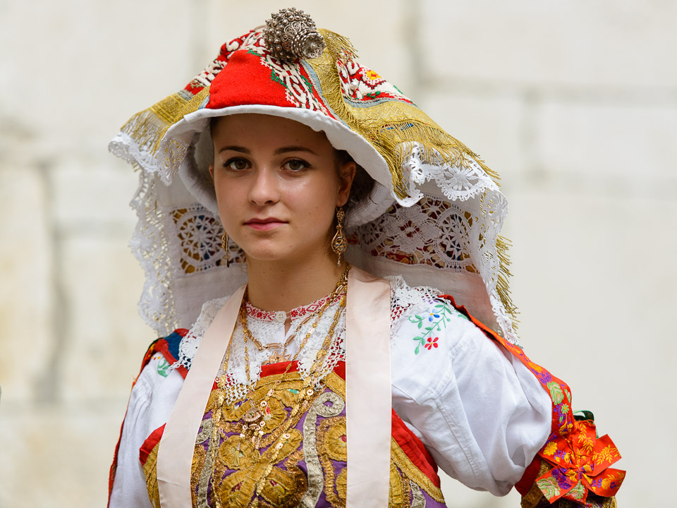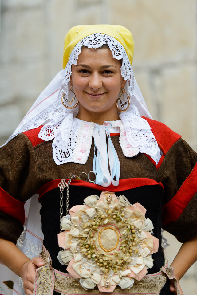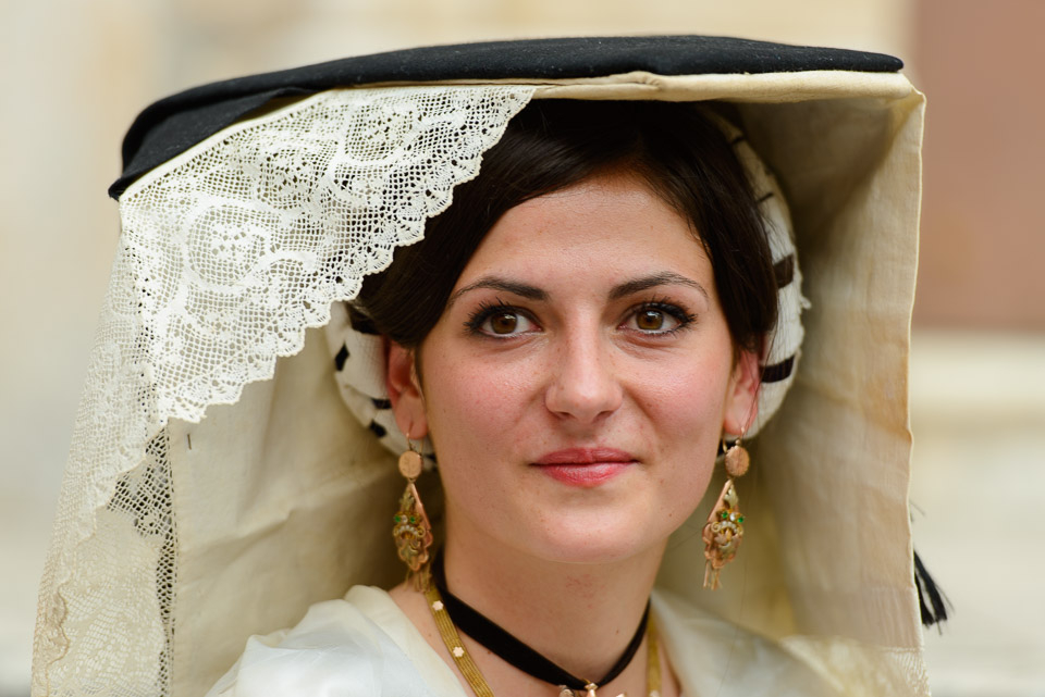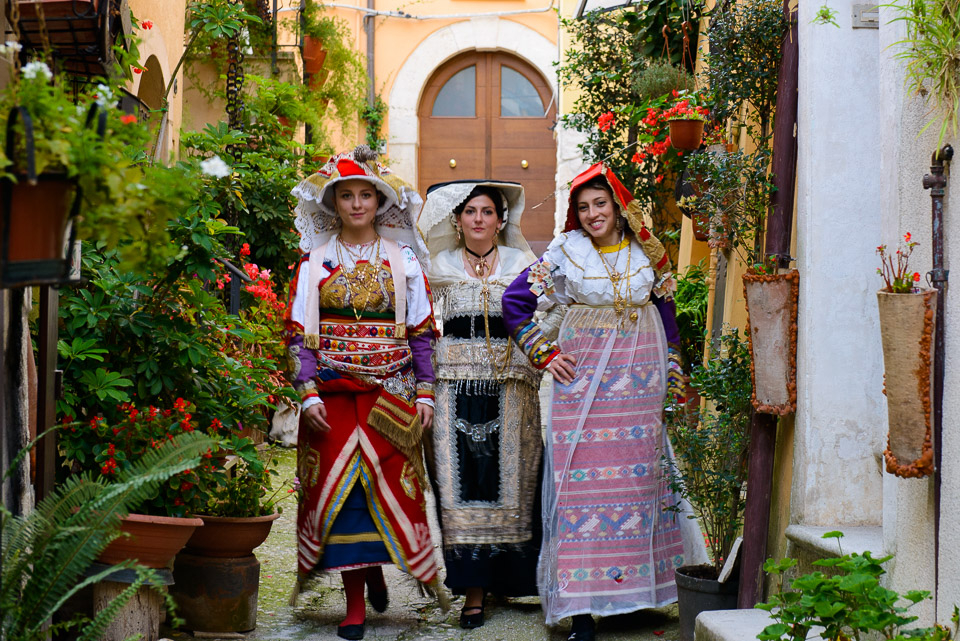 I costumi molisani, entrarono nella “moda” del mondo contadino a partire dal XVI secolo per influenza degli Spagnoli, ma non sembrano ad essi estranee influenze di bulgari, slavi ed albanesi, popoli che nel corso dei secoli hanno visto stanziate in alcune zone del Molise delle loro colonie. Sotto gli Aragonesi si diffusero nuove fogge di vestire che, abbandonata la tunica usata nei molti secoli precedenti, prediligevano per le donne l’ampia gonna con stretto corpetto allacciato davanti e la camicia larga con maniche a sbuffo. Le caratteristiche fondamentali dei costumi molisani rimasero inalterate per i tre secoli successivi, fino al loro progressivo abbandono a partire dagli inizi del XX secolo. I gusti dell’alta nobiltà aragonese influenzarono anche le fogge del mondo contadino molisano, con i prevedibili adattamenti dovuti sia alla carenza di tessuti, sia alle scarsissime disponibilità economiche che limitavano eventuali rifornimenti in mercati lontani, sia infine alle esigenze lavorative che richiedevano indumenti pratici. La ricchezza di ornamenti ed accessori devono la loro origine soprattutto al secolo XVIII a partire dall’inizio della dominazione borbonica nel regno di Napoli; in quell’epoca cominciarono a sorgere anche fabbriche locali di tessuti pregiati e di guarnizioni, delle quali quella di S. Leucio riforniva il Molise di buoni prodotti molto più facilmente che nel secolo precedente.Furono proprio gli accessori e le decorazioni a determinare le distinzioni da zona a zona ed a segnare le peculiarità dei costumi, ad evidenziare i “messaggi” ed i simboli, a dare significati riferiti allo status. Per la donna veniva inequivocabilmente rimarcato lo status di nubile rispetto alla donna maritata e, ancora più visibilmente, rispetto alla vedova. L’abbigliamento nuziale raggiunge il massimo della ricchezza di accessori, guarnizioni, gioielli, la vedova elimina invece ogni decorazione e bandisce i colori.Nel costume femminile il capo fondamentale è la gonna (vunnèlla), scura, molto ampia, arricciata in vita o plissettata “ad organetto”, liscia davanti in modo da ricevere agevolmente il grembiule. Il corpetto, stretto e preferibilmente allacciato davanti, può essere sia unito sia più comunemente staccato dalla gonna, realizzato in modo da stringere la vita e tenere ben sollevato il seno, con la stessa funzione del busto. Il grembiule (zinale), nato per fini pratici, finì con il diventare un complemento essenziale, di valenza non solo decorativa ma anche fortemente simbolica: il grembiule è protezione: donato allo sposo, è simbolo di possesso esclusivo da parte di quest’ultimo. Il copricapo di panno (mappa) è anch’esso fortemente caratterizzato sia nella forma che nelle decorazioni, adatto ad evidenziare e valorizzare il viso, arricchito di spilloni in metallo prezioso talora di dimensioni gigantesca; generalmente il copricapo è una prerogativa delle donne maritate, non usato nei giorni feriali. Altro capo, non strettamente funzionale e per questo non presente in alcuni costumi, è il fazzoletto da collo (scolla), bianca o di colore chiaro (nero o scuro per le vedove), ricamata spesso in rosso con frasi d’amore. Il significato simbolico investe anche i gioielli (di oro, argento, corallo) indossati numerosi il giorno delle nozze e nelle feste importanti. ( testi dal sito web della provincia di Campobasso ).