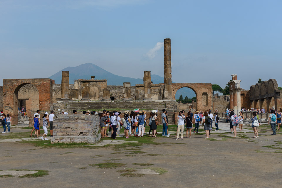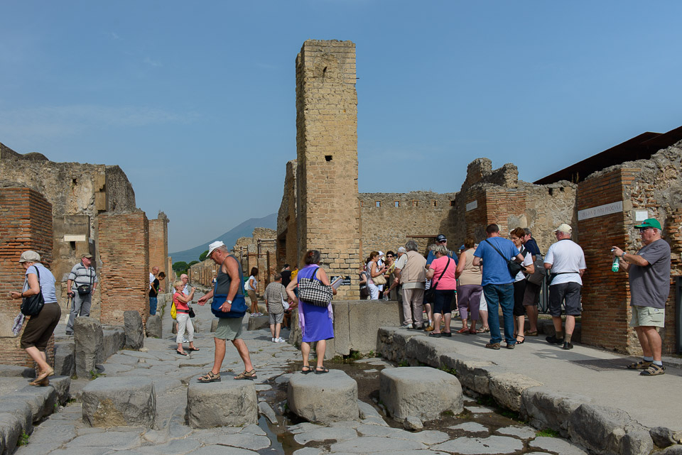 Nell’estate del 79 d.C. (primo anno di regno dell’imperatore Tito, cfr. Cassio Dione V) Pompei fu sommersa da una pioggia di cenere e lapilli (e non lava, come spesso viene riportato) che, salvo un intervallo di alcune ore, cadde ininterrotta fino a formare uno strato di oltre tre metri. Al momento dell’eruzione molti edifici erano in fase di ricostruzione a causa di un sisma verificatosi pochi giorni prima, e non per quello del 62 – come precedentemente creduto -, i cui danni erano già stati completamente riparati. La data di questa eruzione ci è nota in base a una lettera di Plinio il giovane e dovrebbe corrispondere al 24 agosto. Tuttavia non tutti gli studiosi concordano, anche perché di questa lettera non esiste l’originale, ma ci sono solamente trascrizioni successive. In alcune si parla del nono giorno prima delle calende di novembre, corrispondente al 24 di ottobre. Altri indizi vengono dal ritrovamento di frutta secca, come noci e fichi, oppure di sorbe, frutto tipico autunnale, ma la prova forse più importante è il ritrovamento di una moneta d’argento che riporta la scritta IMPXV, ovvero la quindicesima acclamazione di Tito a imperatore, che avvenne l’8 settembre del 79 d.C. Nella cenere solidificata furono ritrovate delle cavità; queste, riempite con colate di gesso o di altro materiale, hanno poi formato i calchi delle vittime dell’eruzione. Nel 1997 l’UNESCO ha dichiarato Pompei “Patrimonio Mondiale dell’Umanità“. Il Comitato ha deciso di promuovere l’area considerando che gli straordinari reperti delle città di Pompei, Ercolano e delle città limitrofe, sepolte dall’eruzione del Vesuvio del 79 d.C., costituiscono la testimonianza unica di una struttura sociale conservata pressoché intatta per due millenni. ( testi e descrizioni dei comuni e di Pompei da Wikipedia )