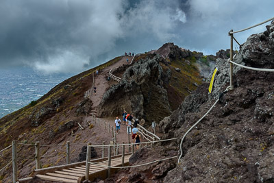 L’escursione sul cratere del Vesuvio (facoltativa a richiesta) richiede una percorrenza a piedi di circa 30 minuti dal piazzale a quota 1000 dove potranno arrivare i pullman. La visita verrà effettuata con l’ausilio delle Guide Alpine (obbligatorio) e comporta un dislivello di circa 250 metri. L’ intera escursione di solito dura 90 minuti. Tale durata può, comunque, variare a seconda dell’età o dello stato di salute del turista, o a causa delle condizioni meteorologiche.