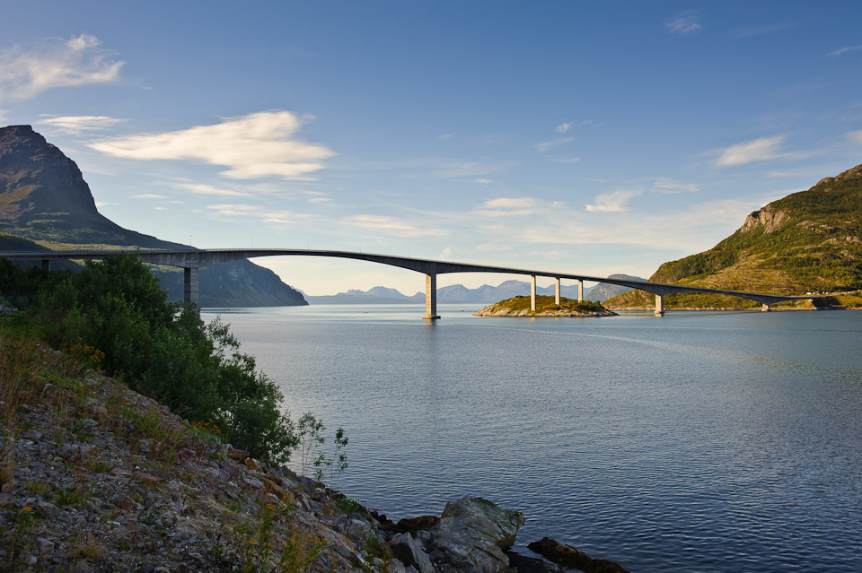 L’autostrada E6 attraversa la contea di Troms per poi proseguire verso Alta e Capo Nord; vicino al paese di Alteidet troviamo l’Øksfjordjøkelen, l’ultimo ghiacciaio sul continente europeo che gi getta direttamente nel mare. La Strada Panoramica Nazionale sull’isola di Senja e il tratto di strada tra Botnhamn e Gryllanfjord (con tre deviazioni a Husøy, Mefjordvær e Bøvær) è chiamata ‘la bocca del diavolo’. Qui la natura suscita forti emozioni e i villaggi dei pescatori sono una testimonianza di vita autentica. Vicino a Bardufoss La cascata di MÃ¥lselvfossen è considerata la cascata nazionale di Norvegia; qui i salmoni compiono il salto più alto d’Europa. Arrivati a Svolvær da Harstad alloggiamo in bellissimi Rorbu e visitiamo le Lofoten risalendo da Reine, per poi dirigerci al villaggio di pescatori di Nusfjord e alla spiaggia bianca di Flakstad. Henningsvær merita una deviazione anche per la panoramica strada, considerato come la ‘Venezia delle Lofoten’ per i suoi canali è molto frequentato sia da turisti che da campeggiatori e scalatori a causa delle pareti di roccia nelle vicinanze. In conclusione a chi si appresta a visitare il nord della Norvegia riassumo dicendo che si tratta sicuramente di un viaggio molto bello e ricco ma impegnativo; nel pianificarlo tenete conto che le distanze pur non sembrando eccessive richiedono tempi di percorrenza elevati in quanto non ci sono autostrade. Occorre pianificare bene le tappe giornaliere ed è di fondamentale importanza informarsi sugli orari dei traghetti in base alla stagione e al giorno della settimana, alcuni infatti effettuano solo una corsa giornaliera.